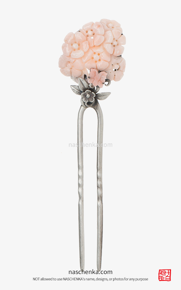 두피에 직접 닿기때문에, 은으로 만든 천연 산호 뒤꽂이는