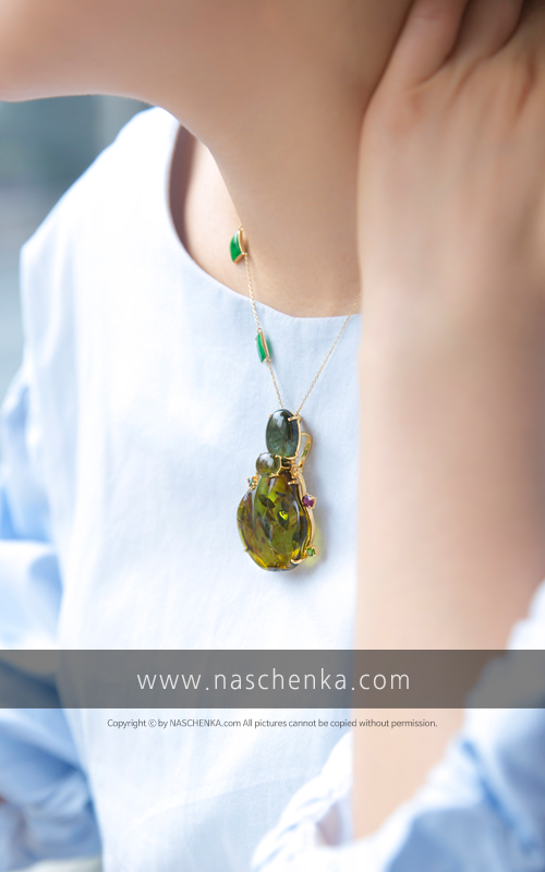 보조석은 가넷, 토르마린, 토파즈 등 모두 역시 천연석으로 작업합니다.