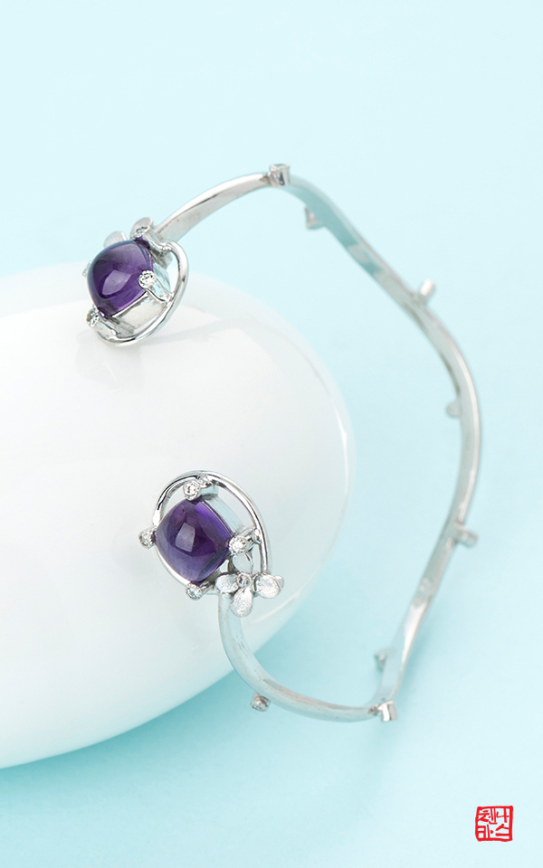 천연 자수정 2 pcs (봉긋한 쉐입이 사랑스러운 디자인)