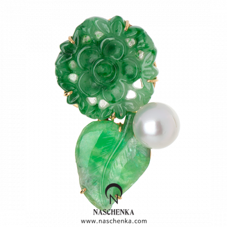 천연 비취, 남양 진주, 은 나스첸카 핸드메이드 셋팅 후 골드 도금 마무리