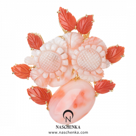 정교한 조각의 천연 산호와 캐보숑으로 디자인하고