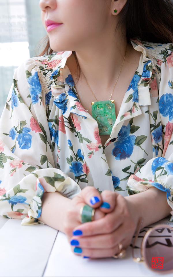 비취, 은(silver 92.5) 세공 후 골드 도금 마무리