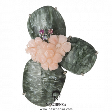 천연 산호와 세라프나이트 라는 카키빛의 원석입니다.