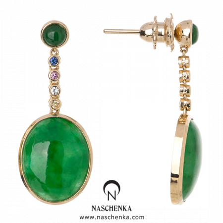 * 천연 비취, 사파이어, 14K 자체 옐로우 골드 셋팅