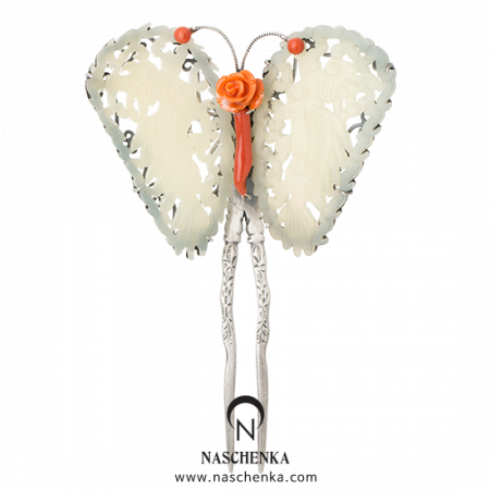 깨끗한 옥조각이 나비의 날개를 장식하고
