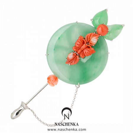 천연 비취, 천연 산호, 은 나스첸카핸드메이드 셋팅