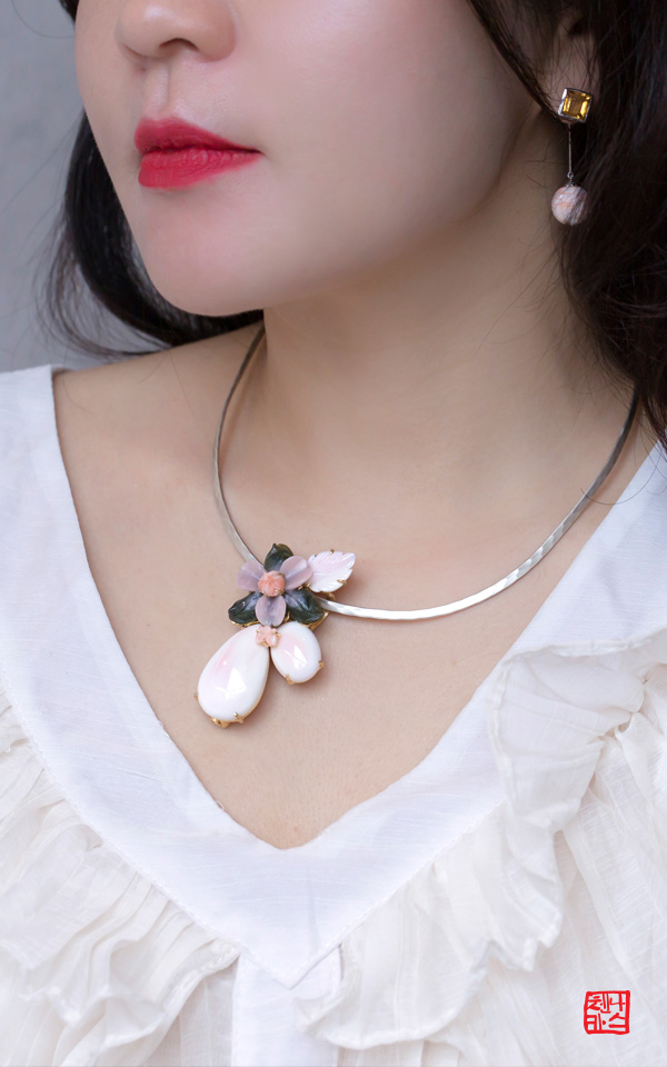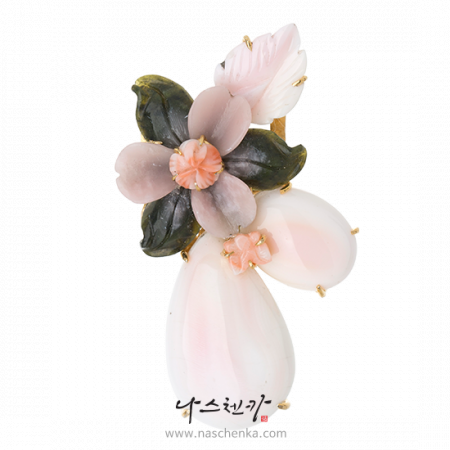상단에 꽃은 사문석, 그 위에 꽃은 천연산호, 그 아래 나비도 천연산호