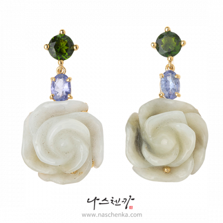 HOME > 나스첸카 > 귀걸이 > [나스첸카] 우연히 널 보았을때 _ 비취귀걸이 크롬디옵사이드귀걸이 탄자나이트귀걸이