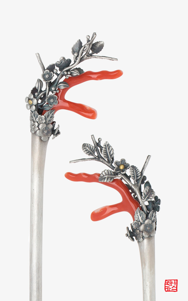 전체 은, 나스첸카 공방의 은 산호 비녀 입니다.