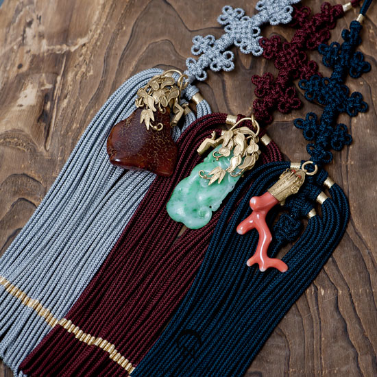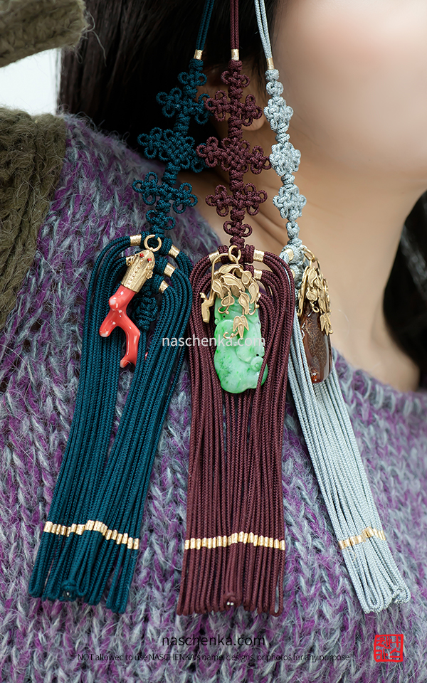 산호, 호박, 비취의 삼작 노리개 입니다.