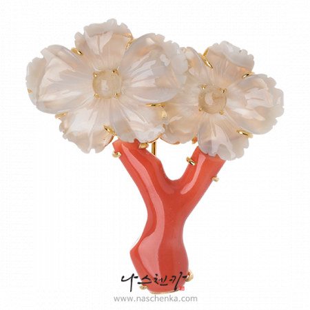 미색 칼세도니아 아게이트 꽃잎 두장과