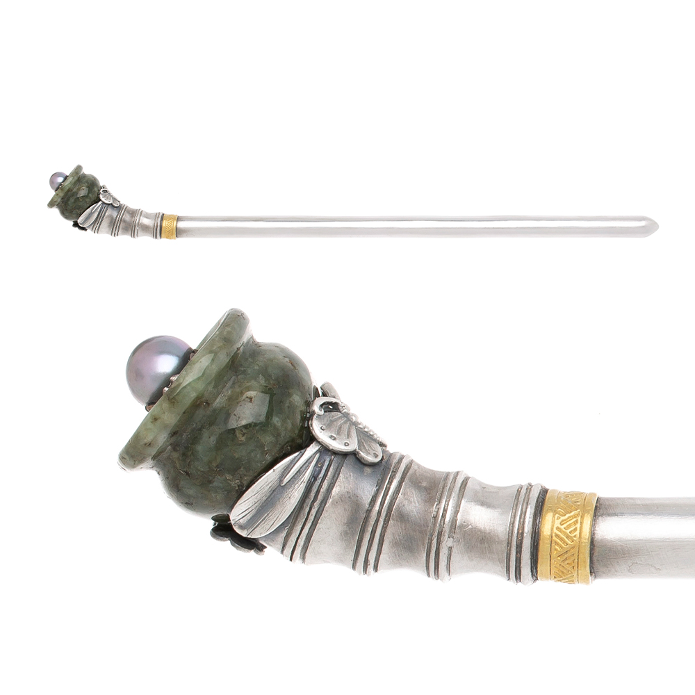 - HOME > 비녀 Binyeo > Basic 입문 비녀 > [나스첸카] 매혹 죽절 비취 남양진주 은 비녀
