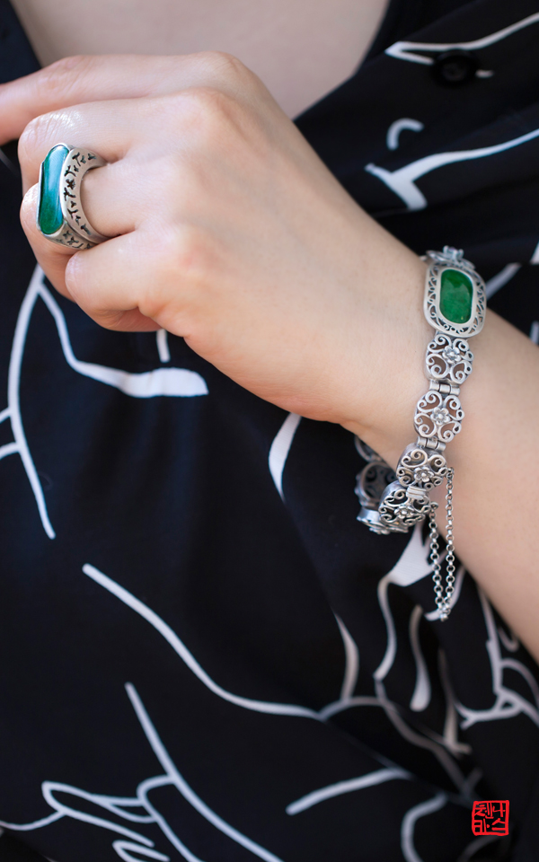 관련상품의 비취 어슷썰기 반지, 귀걸이와 세트 되는 팔찌 입니다.