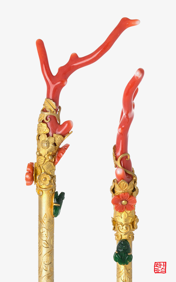 보조석에 사용된 홍색의 원석 역시 천연 산호이오며,