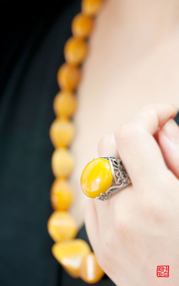 소재 : 호박 (밀화), 실버 은 92.5 나스첸카 핸드메이드 셋팅