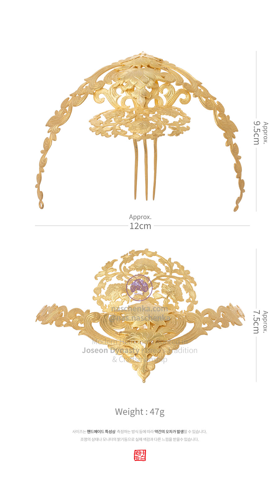 [나스첸카] 대작 궁티아라 왕관 [실버 수공예 티아라 뒤꽂이]