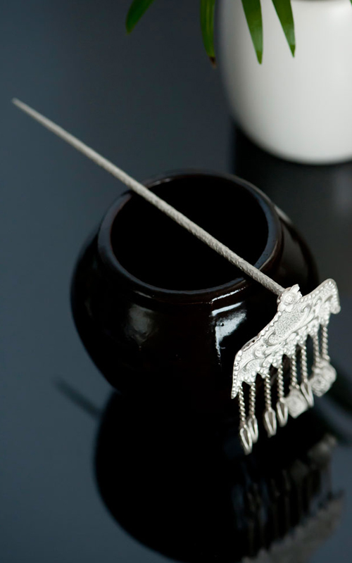 은으로 만든 뒤꽂이입니다.