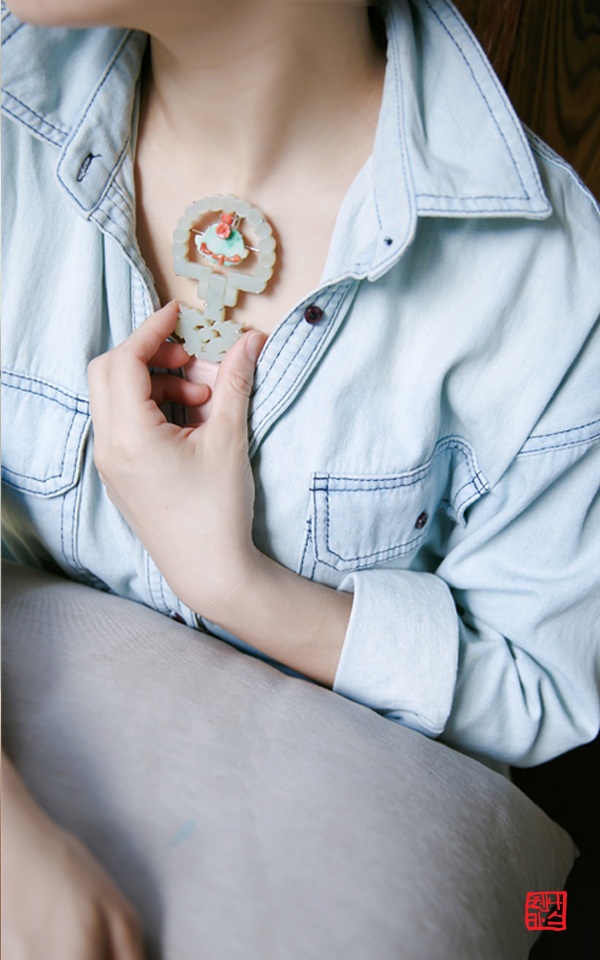 소재 : 백옥, 산호, 골동 비취, (은 92.5), 수공 셋팅