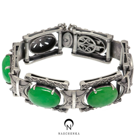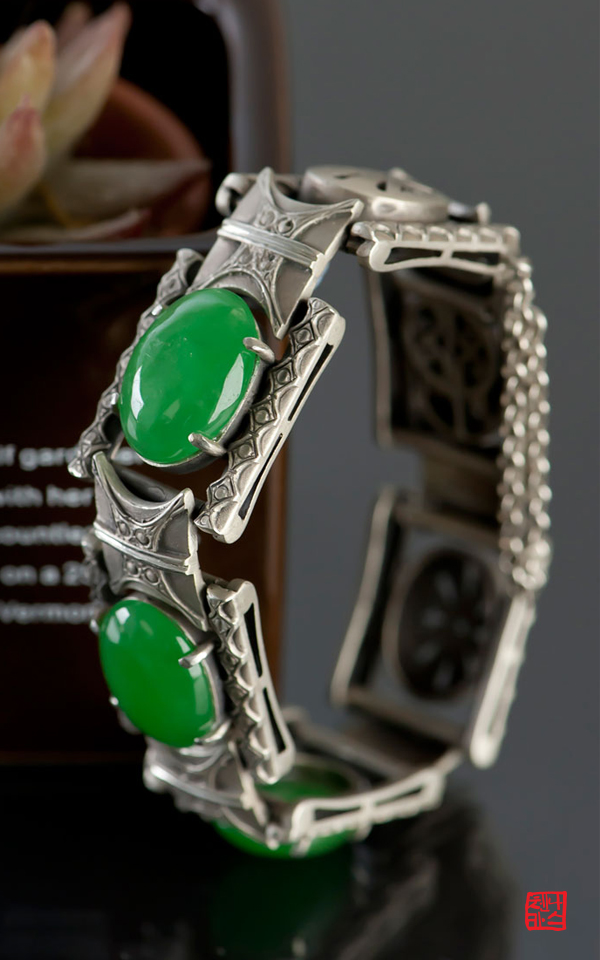 맨드르르 부드러운 비취와 은 세공의 팔찌입니다.